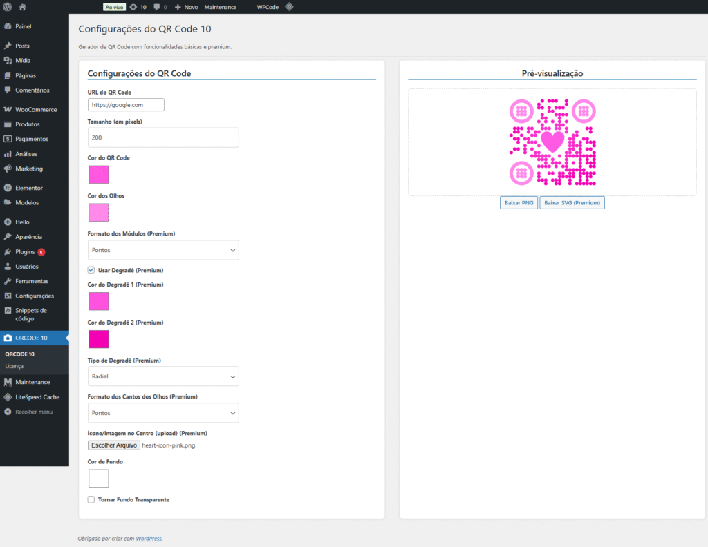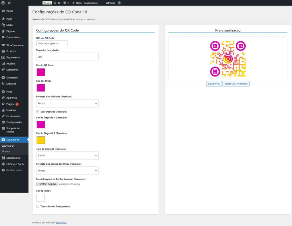 Colocar a url de destino do QRCODE, personalizar, e fazer o download do seu QRCODE.